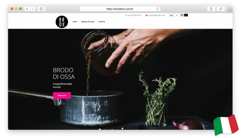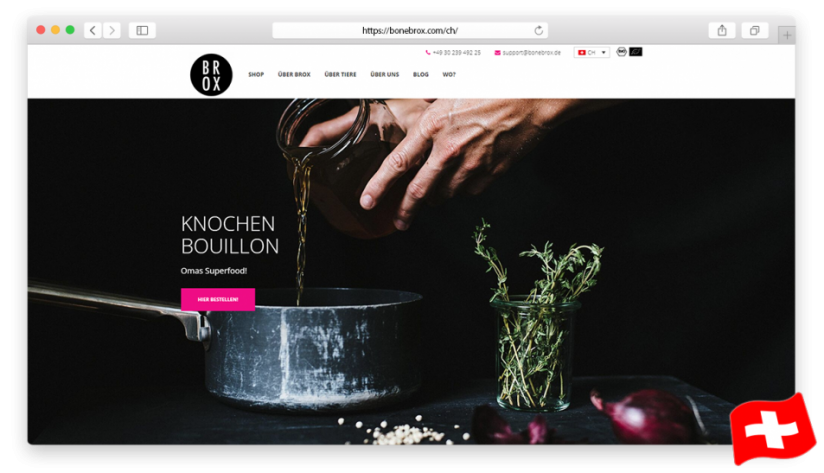 Kunden in Deutschland, Österreich und der Schweiz – ein deutschsprachiges Angebot für alle reicht, oder? Weit gefehlt. Nix mit deutscher Einheitsbrühe. Auf die Feinheiten kommt es an. Während wir Deutschen ganz selbstverständlich von Brühe sprechen, rümpfen Österreicher und Schweizer die Nase. Mit Brühe verbinden sie nichts Gutes. Das Wort Brühe ist hier ein echter Kaufkiller. Damit auch die Österreicher und Schweizer trotzdem auf den Geschmack von Rind, Huhn und Vitalpilz kommen, greifen wir auf die Sprach-App Langify zurück. Damit kann der Shop in verschiedene Sprachen übersetzt werden – selbst wenn es sich vermeintlich nur um Deutsch handelt. Als Bouillon verpackt, schmeckt die Brühe nun auch in den beiden Alpenrepubliken. Mahlzeit!
